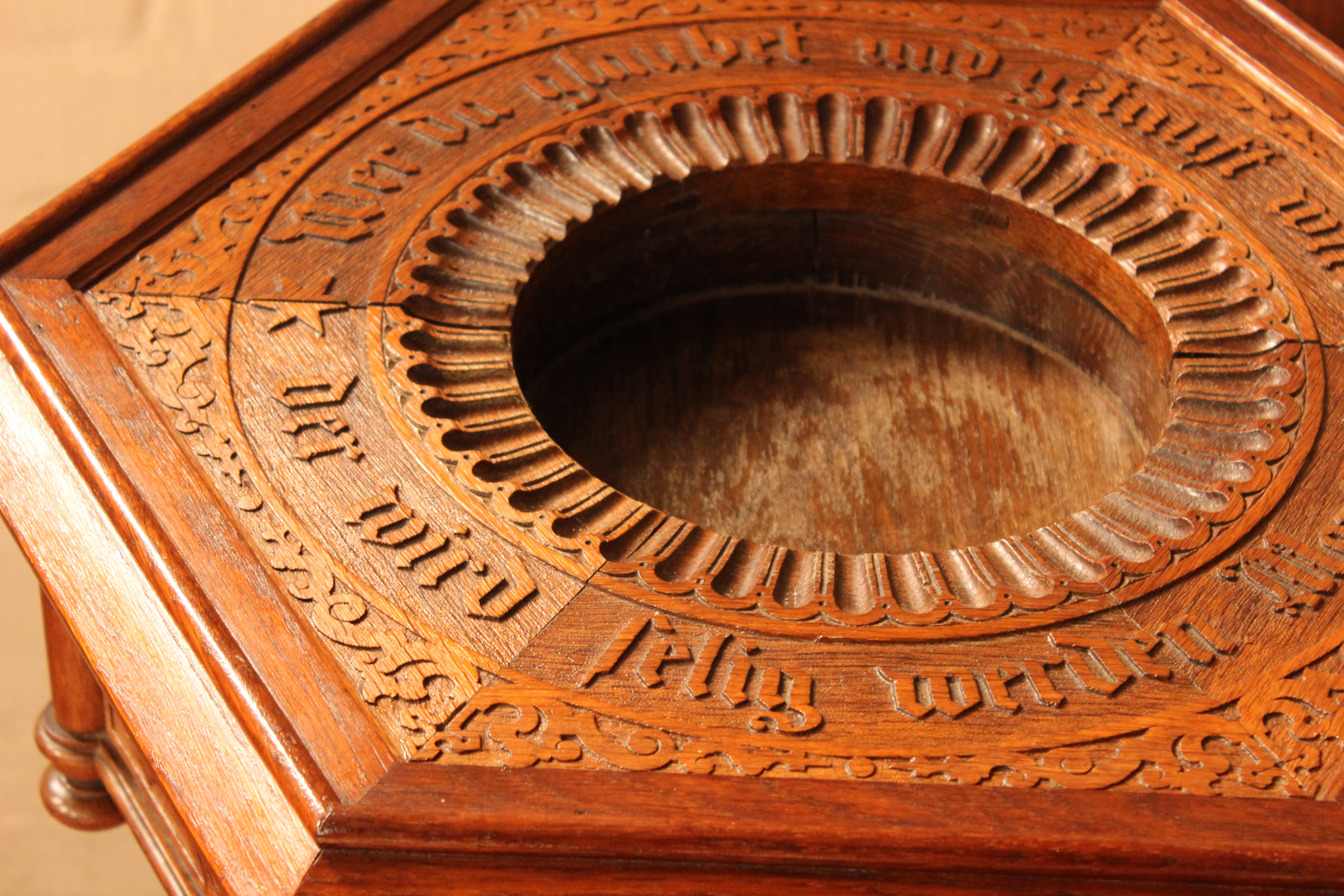 Das Taufbecken aus Sandstein ist 1894 durch ein geschnitztes Taufbecken ersetzt worden